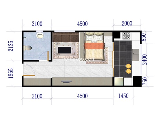 ÌìÓù¸ó»§ÐÍ1ÊÒ2Ìü1³ø1ÎÀ40ƽ