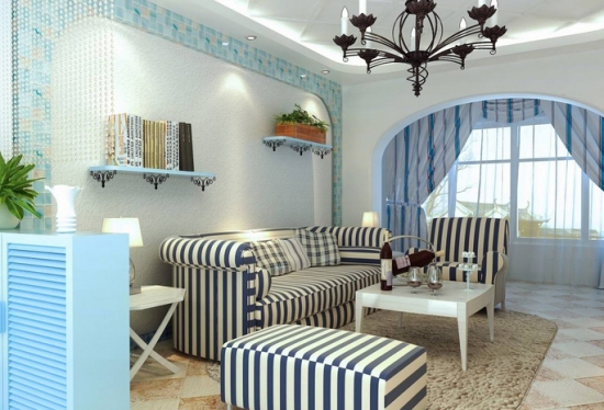 地中海风格式家具主要运用白色为主体,也有采用非常浓烈的西班牙风格,运用白色和蓝色不同程度的配比相结合形成对比来形成风格。厨房的地面上铺上彩色的陶瓷砖,家具商有沧桑岁月的斑驳的感觉,饰品主要以休闲,自然,放松的主题搭配,家具都是采用线条柔和,修边浑圆,没有明显的边角。主题上颜色以蓝白混搭为主,其他颜色为辅,其他颜色较为融合,不亦大红大紫使人看的显眼。主题颜色除了蓝白搭配外,还可以形成黄、蓝紫和绿色的搭配或者土黄与红褐色的天然景观独特搭配。