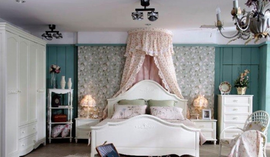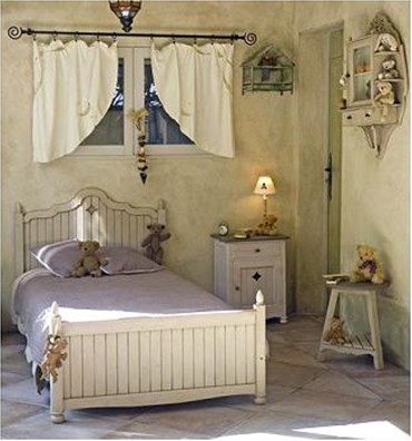 法式田园家具的特点主要在于家具的洗白处理及大胆的配色,以明媚的色彩设计方案为主要色调,家具的洗白处理能使家具呈现出古典美,而红、黄、蓝三色的配搭,则显露着土地肥沃的景象,而椅脚被简化的卷曲弧线及精美的纹饰也是法式优雅乡村生活的体现。