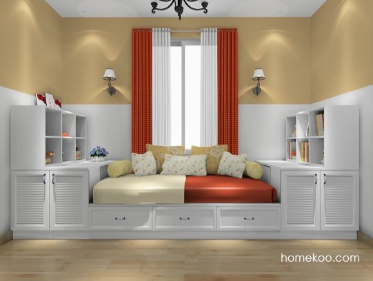 榻榻米装修效果图2014图片。窗户不大但光线很好,也十分适合搭配一款体量适宜的休闲榻榻米,形成一处功能实用的休闲区。白榻下是收纳物件的抽屉,榻上摆上柔软的靠垫,构筑一方惬意闲适的角落。