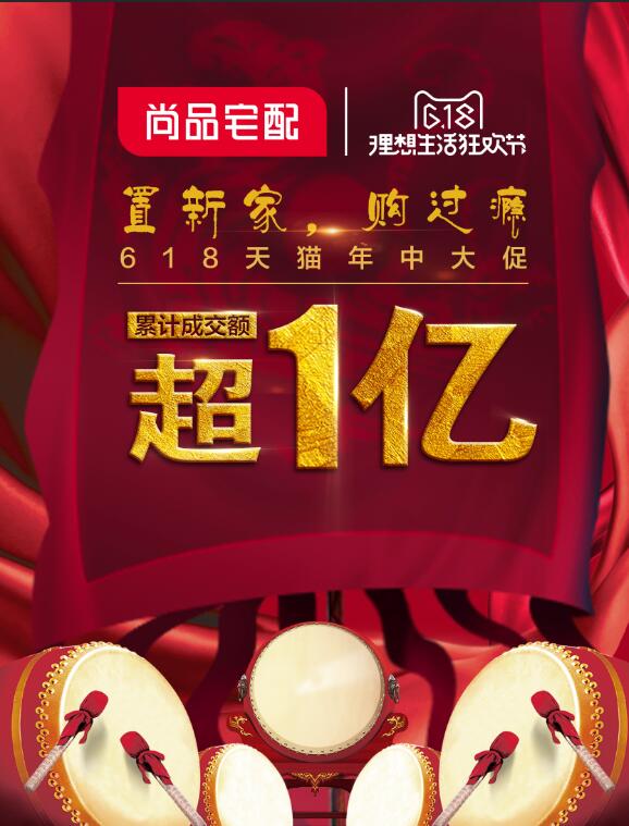 今年618天猫年中大促,尚品宅配累计成交额超1亿,再创辉煌!棒棒哒!尚品宅配与你一起,为理想生活而来,敢突破,够逼格!敢为先,够创新!敢出格,够刺激!
